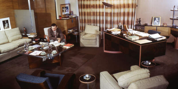 Кабинет модного гения — не просто рабочее пространство, это был тихий, тщательно выстроенный механизм, в котором всё — от планировки до освещения — подчинялось идее совершенства. Сен-Лоран создавал не моду, а эпоху. И кабинет, в котором рождались его коллекции, отражал ту же безупречную дисциплину, сдержанность, изысканность и уверенность, которые всегда отличали haute couture.