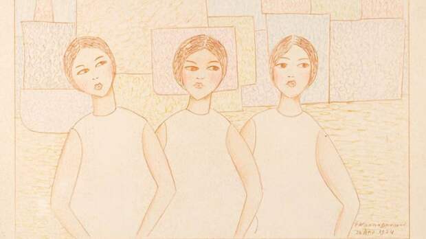 На очереди — год, когда «Три девушки» созданы. Это уже поздний Кропивницкий, работал он тогда преимущественно в графике. Женские портреты — его фишечка. Сами можете проверить: в следующий раз девушку Кропивницкого вы «узнаете из тысячи», как в той песне.