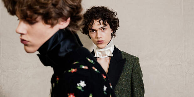 Если разобраться, то гардероб от андерсоновского Dior много проще: сложных гибридов там нет (если не считать шорты с вертикальными воланами по бокам), всё в меру исторично и читаемо. К людям «иного сорта» отсылает ещё один предмет с позабытым названием. Длинный шарф, который минимум дважды обматывали вокруг шеи и завязывали красивым узлом либо на бант, — это крават. Мы не будем вспоминать здесь денди Бо Браммелла с его комнатой, усыпанной плохо завязанными краватами: у человека была явная обсессия и куча свободного времени. Краваты у Андерсона завязаны однотипной бабочкой, но и здесь есть нюанс. Как выяснил на личном опыте всеобщий любимчик, актер Джош О’Коннор, неофициальный пока что амбассадор бренда, бабочке лучше быть не шире лица. Включая уши.