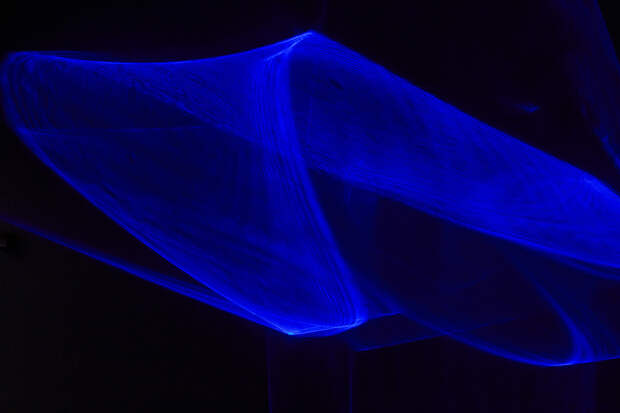 Это первая световая инсталляция, которую показывают в VS Gallery за все время своего существования. Идея Кирилла Рейва заключается в том, чтобы каким-либо образом визуализировать интернет и интернет-пространство. Результатом его размышлений на эту тему стала бесконечно меняющаяся и пребывающая в движении световая лента насыщенного синего цвета. Именно этот оттенок синего есть на каждом интернет-ресурсе в виде гиперссылок. Но лично мне больше откликается другая мысль. В этот синий цвет был выкрашен печально известный «синий экран смерти» на устройствах с операционной системой Windows, с которым сталкивались хотя бы раз многие владельцы компьютеров (в том числе и я).