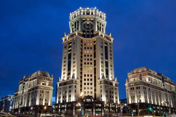 Сталинское, конечно. В пояснительной записке к проекту так и было написано. Это тоже Посохин. И нормальное было бы здание, если бы не этот полированный гранит на стенах. Убираешь полированный гранит — получается, действительно, довольно приличное здание. При всем скептицизме, с которым обычно говорят о Посохине, он архитектор-то умелый, мастеровитый. Просто…помните, у Людвига Мис ван дер Роэ есть цитата «Бог в деталях»? В случае с «Павелецкой плазой» дело именно в этом. Достаточно было облицевать её нормальным гранитом, как дома на Тверской.