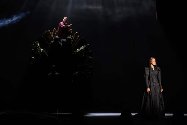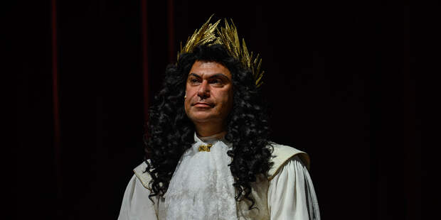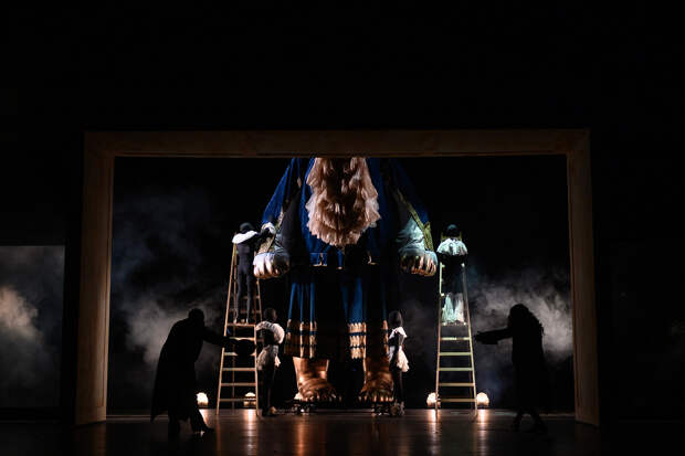 Филипп Киркоров в зале и Николай Цискаридзе на сцене — это некоторое нарушение дихотомии, заложенной в спектакле. Николай Цискаридзе, играющий короля Луи, представляет солярную сторону мироздания, а Константин Хабенский, исполняющий роль Мольера, — лунарную. Это недвусмысленно демонстрируется в открывающей сцене, когда два актёра с гигантскими младенческими головами качаются на качелях между Солнцем и Луной. А тут — Цискаридзе и Киркоров, два солнца в одном помещении. Помещение, конечно, разделено четвёртой стеной, но в спектакле она ломается каждые семь–восемь минут. И четвёртая, и пятая, и шестая.