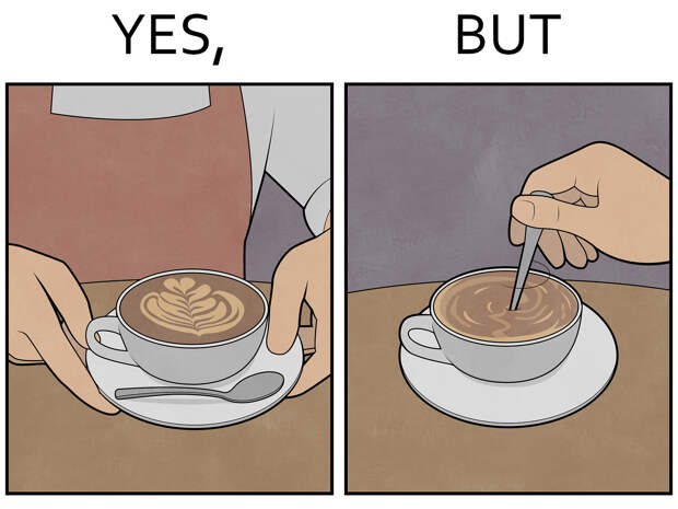 У меня есть работы, которые я задумывал как менее резонансные и делал скорее для себя. Иногда они набирали большое количество возмущений. Например, про какие-то работы в “Yes, but” мне пишут, что это очень сексистские высказывания, при том что у меня одинаково поднимаются вопросы и женских противоречий, и мужских. Почему-то люди часто видят один пол, одни проблемы и оскорбляются. Наверное, меня удивляет спустя годы, что люди находят повод оскорбиться даже там, где оскорблений никаких не задумывалось. И более того, это вообще было противоположное высказывание.