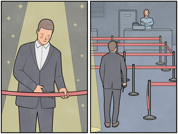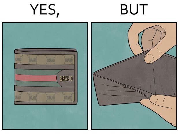 Она появилась случайно, изначально называлась «Да, но». Я начал свой путь художника в VK еще 10 лет назад, сейчас у меня там 300 тыс. подписчиков. В своём аккаунте с рисунками я попробовал такой формат, выложил. Основная концепция была в том, что люди предпочитают брендовые дорогие вещи — даже старые — новым, но менее престижных марок. Например, готовы ходить с разбитым экраном iPhone, но не купить Xiaomi или Samsung. Или купить BMW, который не работает и стоит на эвакуаторе, вместо того чтобы приобрести Škoda, которая будет нормально ездить. В принципе, серия была посвящена именно этому.